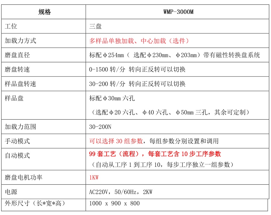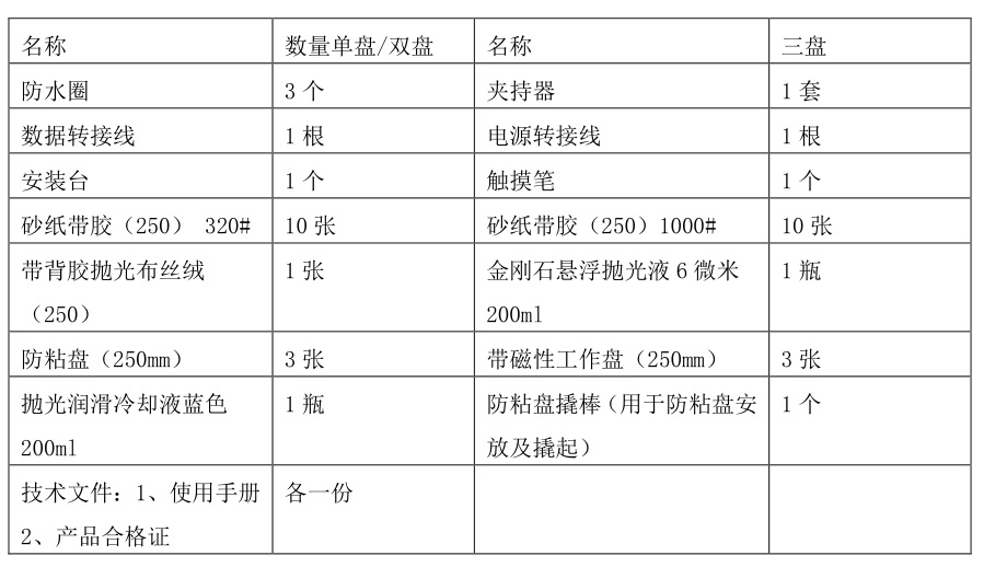 根据每一步磨抛工序,可设置和调用 30 种工序参数:磨盘和磨头转动速度、磨抛时间、水通断……