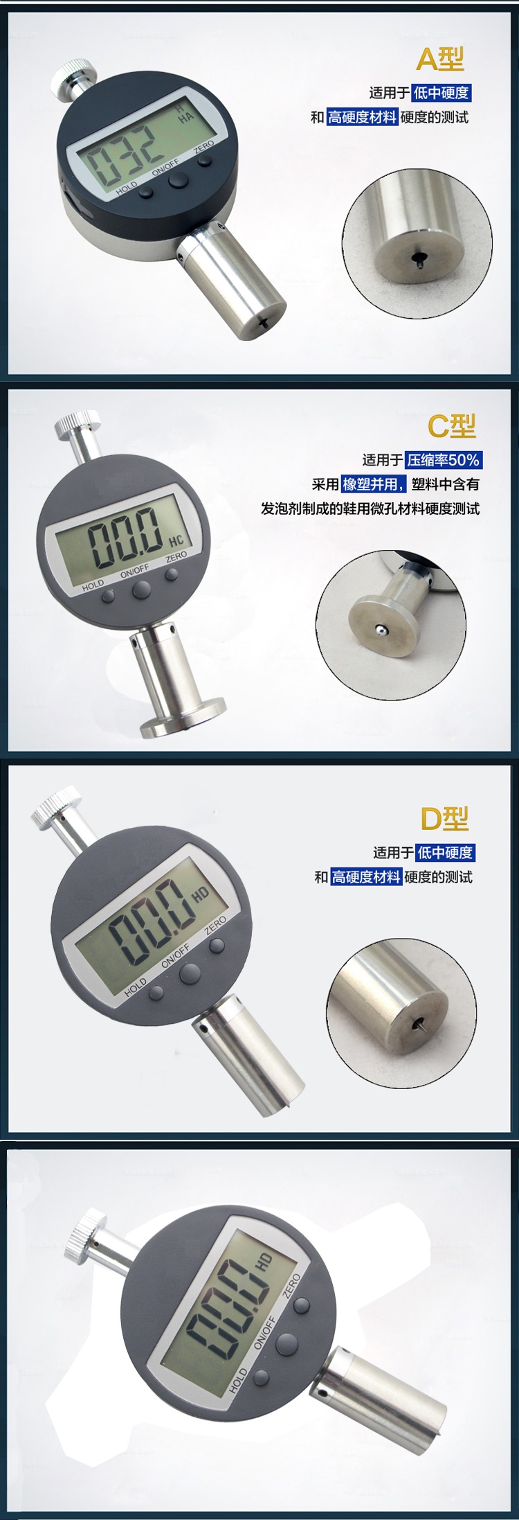 3).当试样用A型硬度计测量值超过90度时,推荐使用D型硬度计,当D型硬度计测量值低于20度时,推荐用A型硬度计。A型硬度计示值低于10度时是不准确的,测量结果不能使用。邵氏硬度计在使用完毕后,应擦净装入仪器盒内,放置干燥处,防止受潮。